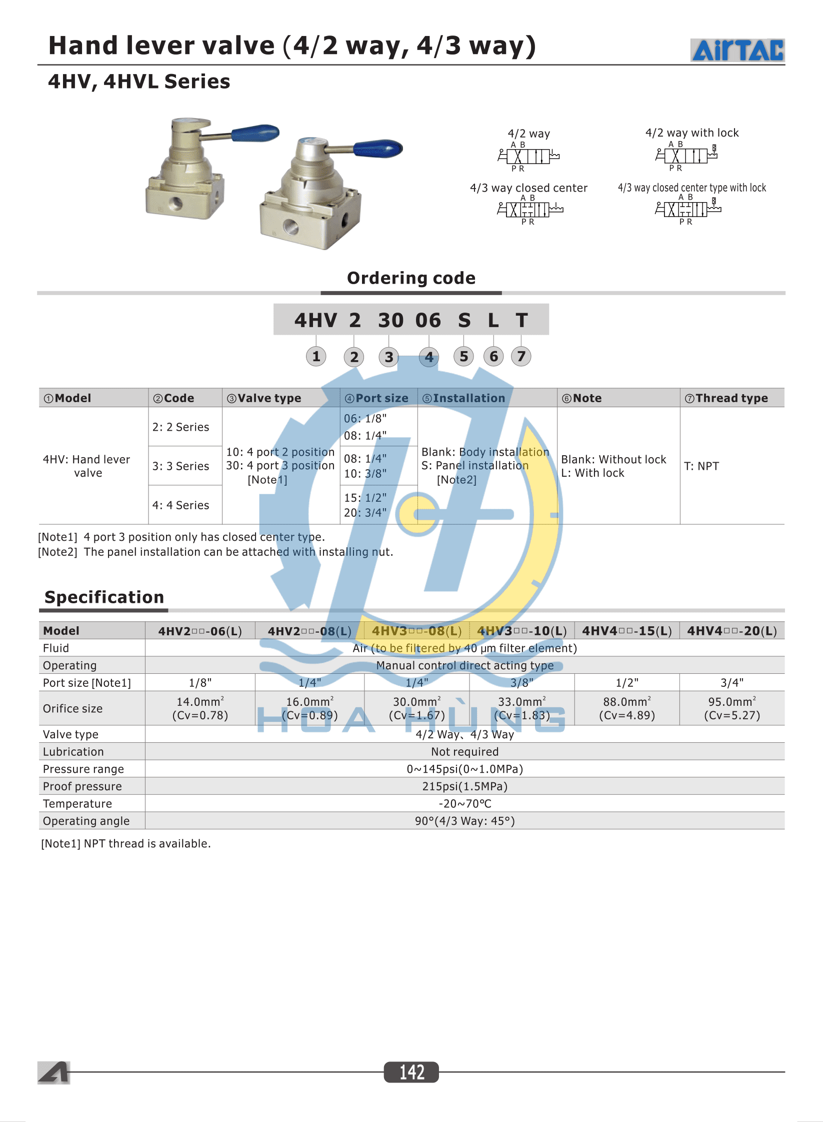 4HVL Series Airtac – Hand lever valve (4/2 way, 4/3 way) |