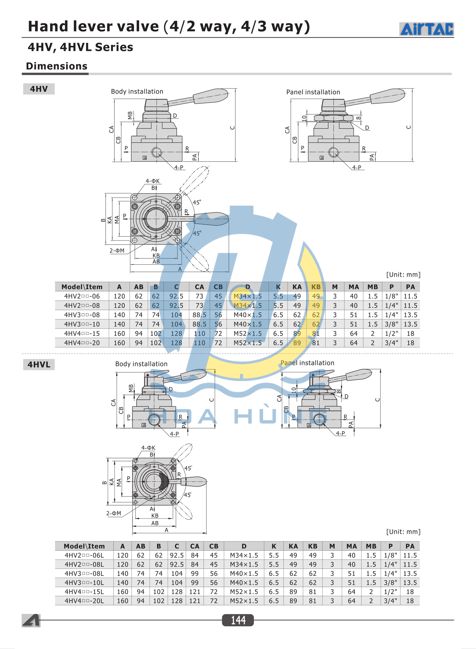 4HV Series Airtac – Hand lever valve (4/2 way, 4/3 way) |